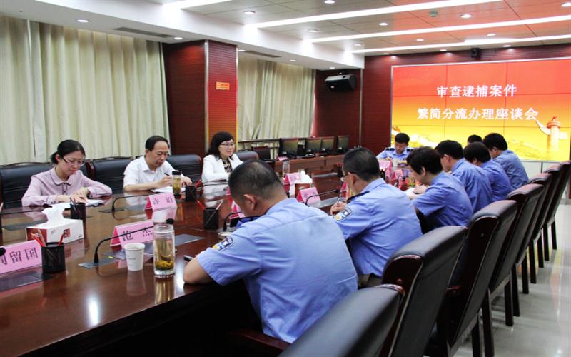 近日,市检察院侦监处处长张庆立一行,对县检察院刑事案件“繁简分流”试点工作进行督导检查,并组织召开审查逮捕案件繁简分流办理座谈会。县公安局党委委员、副局长谢目法及参与繁简分流工作的法制大队大队长和部分派出所所长参加了座谈会。