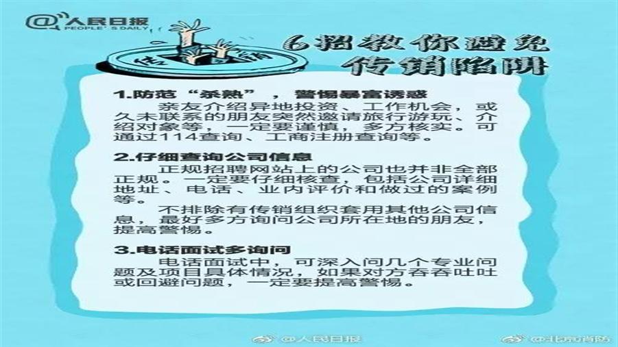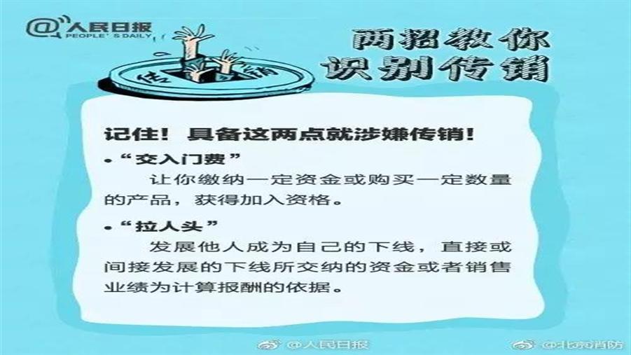 近日,教育部等四部门印发通知,严厉打击、依法取缔传销组织。亲人邀约、相亲、找工作…传销其实就潜伏在我们身边!传销组织都有什么套路?什么特征能认定传销?误入传销该如何自救?34个“黑名单”传销组织+最全防范指南↓↓扩散,务必提高警惕性!