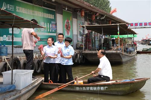 三、上好“宣传课””。紧紧围绕世界环境日这一主题,通过设置展板、发放资料等形式,向学生和生活在水上的渔民宣传《中华人民共和国环境保护法》等法律法规,耐心解答群众提出的关于在禁渔期、禁渔区进行非法捕捞活动等法律问题。我院退休法官王运同志不畏酷暑全程协调参与,并亲自划船给渔民发放普法宣传单页。普法宣传即能够解疑释惑,又在同学们和渔民的心里种下“环保”的种子。